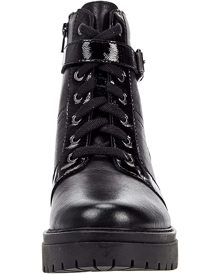 - Lace-up closure, side zipper closure and adjustable buckle closure.