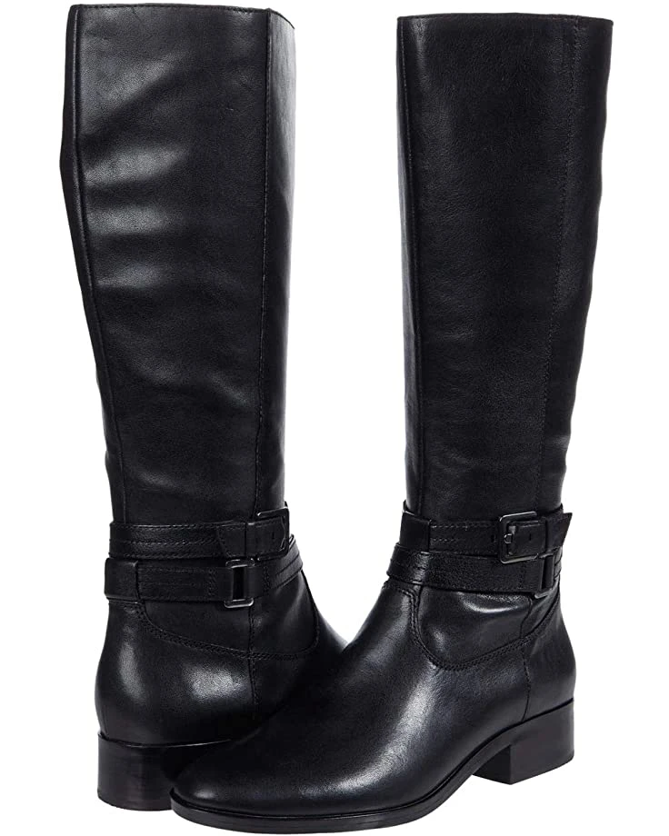 - Chic and classic, the Naturalizer® Reid tall riding boot is sure to stand the test of time. The sophisticated tall boots are constructed from a smooth leather upper with a buckle wrap strap around the ankle.
